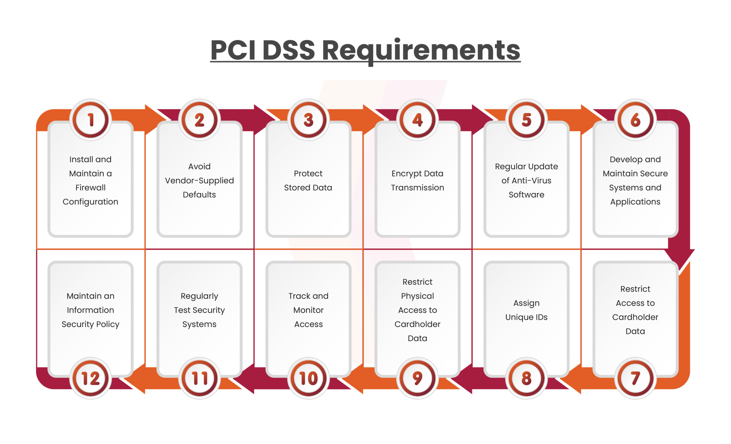 PCI DSS 12 standards are a set of security measures that firms must adopt to secure credit card data and ensure compliance.